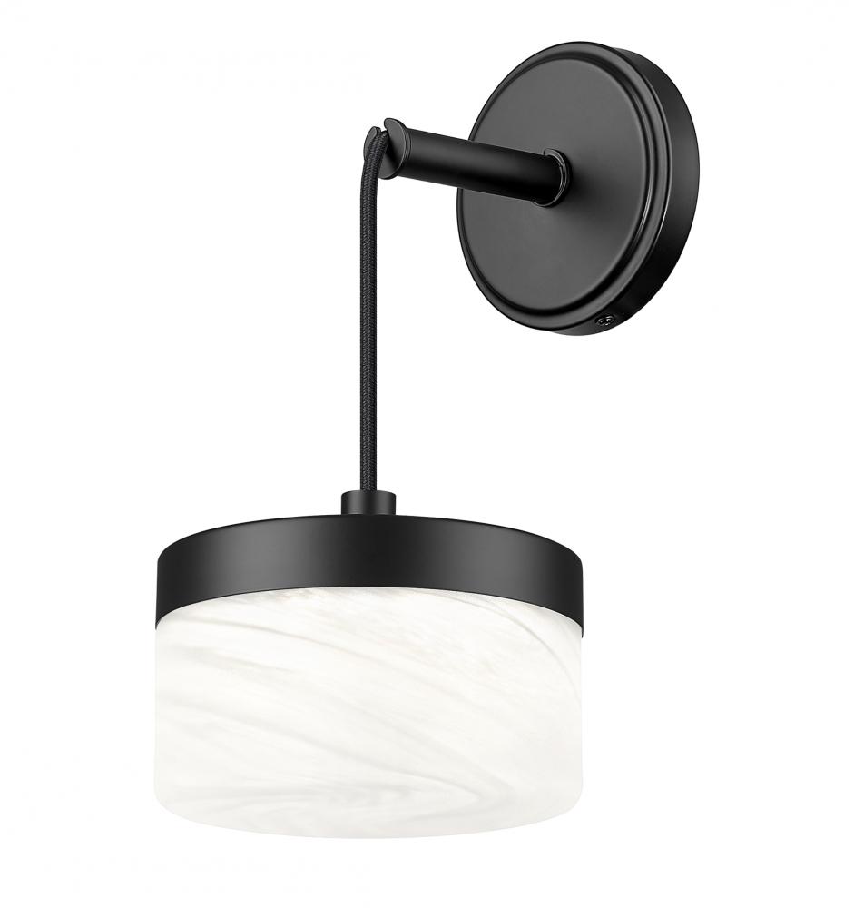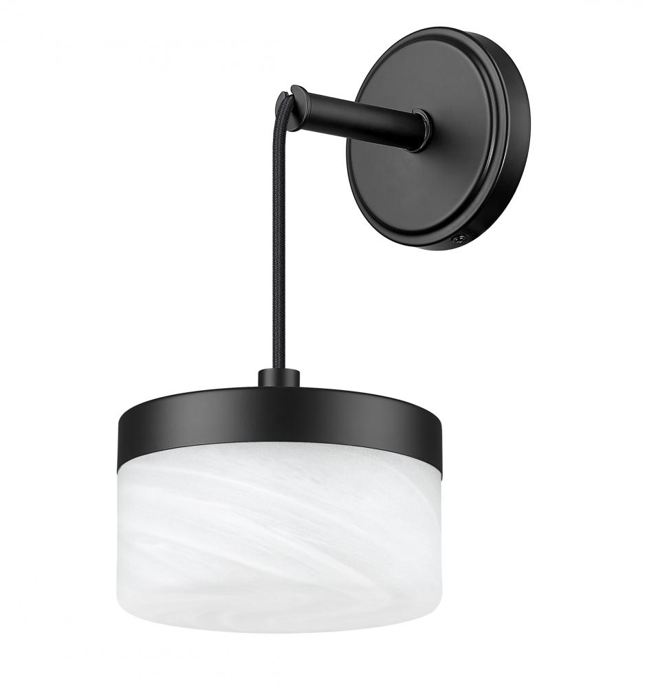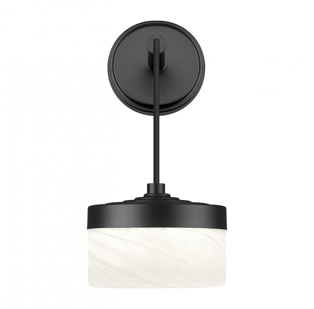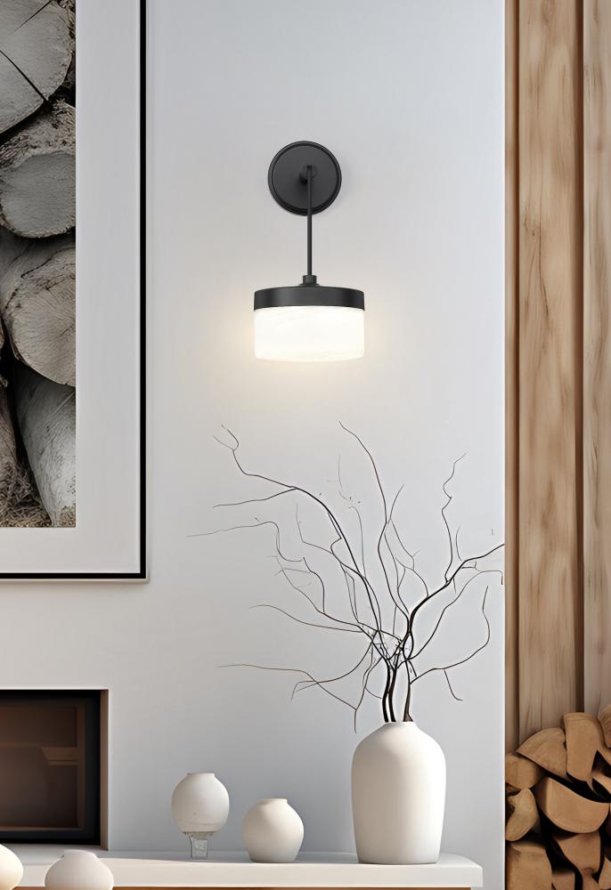 At the edge of a mirror or along a hallway wall, this matte black one-light LED wall sconce introduces a compact accent of deep metal and clouded glass. The integrated light source casts a focused, flattering glow that works beautifully for bedtime reading, getting ready in a powder room, or guiding late-night trips down the hall. Used in pairs beside a vanity or spaced in a sequence along a corridor, it stitches the space together with a calm, contemporary touch.