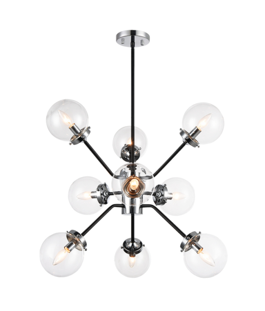 A Mid-Century style that will work with many décors. The series comes in two finishes, Aged Gold Brass and Chrome with Matte Black accents. The finished look can be completely different whether you choose opal or clear glass. The fixtures include a 2-inch rod that you can convert to semi-flush pieces instead of a chandelier. This series can brighten any room with its timeless style and versatile design.
