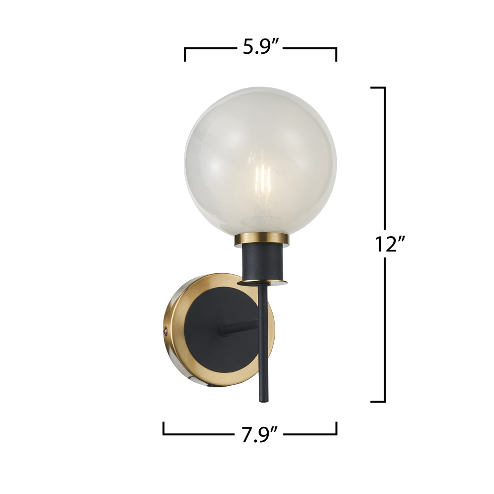The Gem collection with “Blizzard” glassware exudes a sense of sophistication. Featuring a glossy textured white, the glass glows giving it a timeless and contemporary feel. The combination of the black framing with brushed brass is simply exquisite. A beautiful wall sconce for any surrounding.
